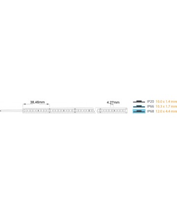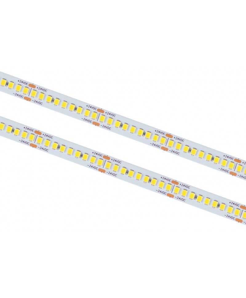 Επαγγελματική ταινία LED για συνεχή λειτουργία. Ταινία LED 12W ενεργειακής κλάσης B με φωτεινή απόδοση 220 lm/W , μας δίνει την δυνατότητα με λίγα watt να έχουμε μεγάλη απόδοση των 2400lm ανά μέτρο και ταυτόχρονα να έχουμε οικονομία στην κατανάλωση του ρεύματος. Η επένδυση PCB δύο στρώσεων με ίχνη χαλκού 3Oz χαρακτηρίζεται από χαμηλές πτώσεις τάσης και χαμηλότερη θερμοκρασία λειτουργίας με μακριά διάρκεια ζωής. LED που πληρούν τις απαιτήσεις της δοκιμής LM-80, η οποία εγγυάται χαμηλή πτώση στη φωτεινή ροή και σταθερότητα χρώματος με την πάροδο του χρόνου.