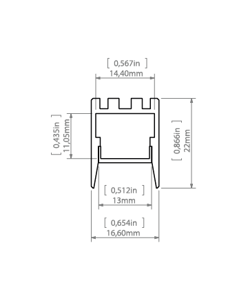 • Ελάχιστες διαστάσεις για λωρίδες LED πλάτους 14 mm και για δημιουργία γραμμής φωτός