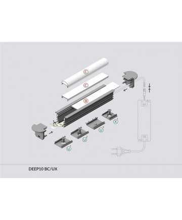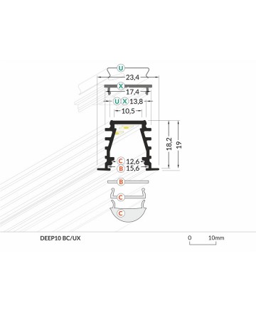 Προφίλ LED DEEP10 BC/UX εσωτερικής τοποθέτησης, χρώμα ΛΕΥΚΟ