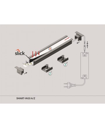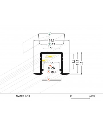 Προφίλ LED SMART-IN10 A/Z εσωτερικής τοποθέτησης, χρώμα ΛΕΥΚΟ