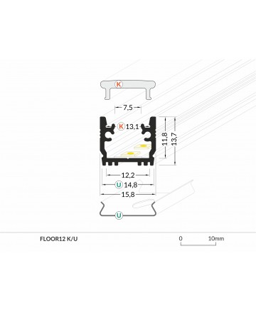 Προφίλ LED FLOOR12 K/U εσωτερικής τοποθέτησης, χρώμα SILVER